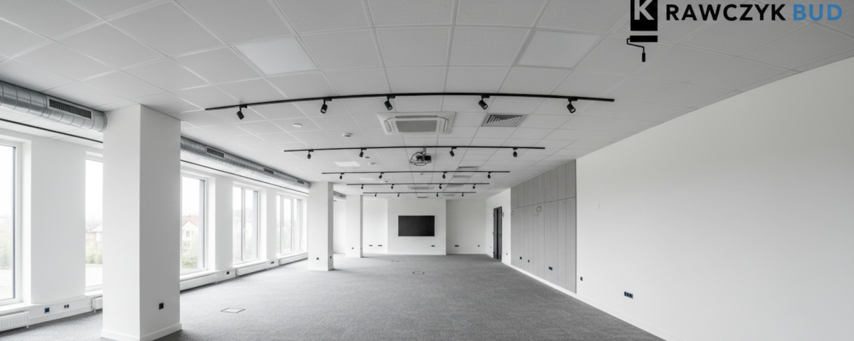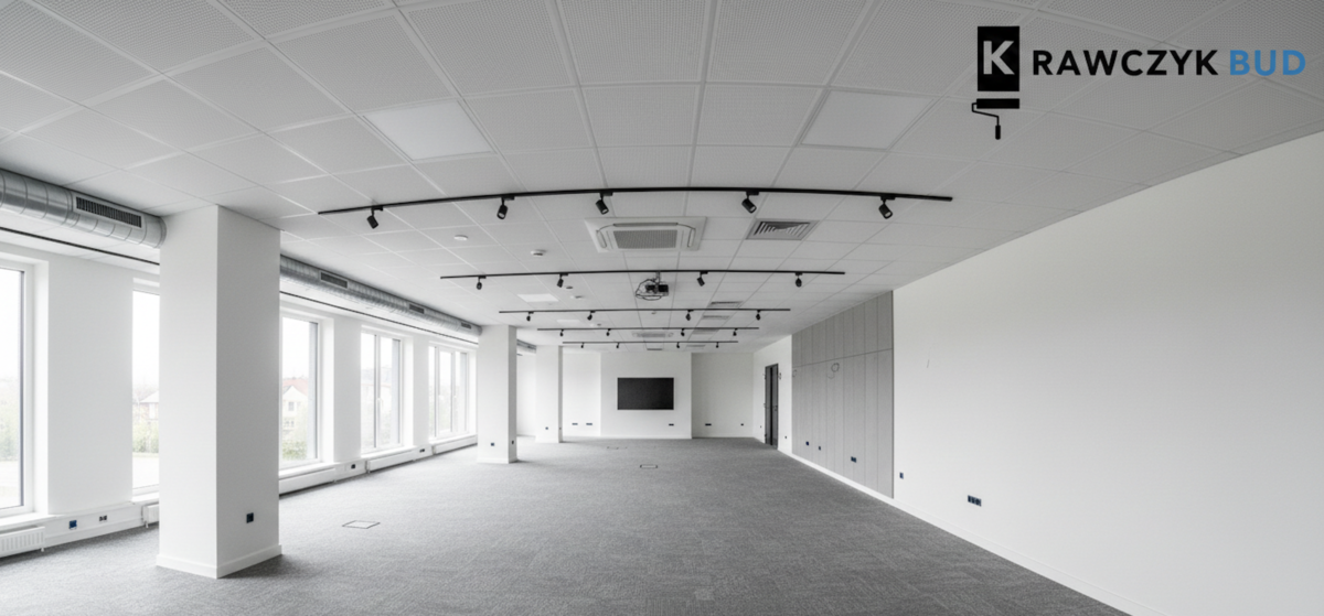 ZAAWANSOWANE ZAPLECZE TECHNICZNE Podczas realizacji lokalu w Kielcach kluczowe było sprawne zarządzanie logistyką i terminami. Wykorzystaliśmy profesjonalne agregaty malarskie oraz systemy szlifowania bezpyłowego, co pozwoliło na zachowanie najwyższych standardów czystości w obiekcie biurowym. Całość prac została wykonana w oparciu o rygorystyczne normy BHP, a zastosowane materiały posiadają niezbędne atesty wytrzymałościowe dla obiektów o dużym natężeniu ruchu.